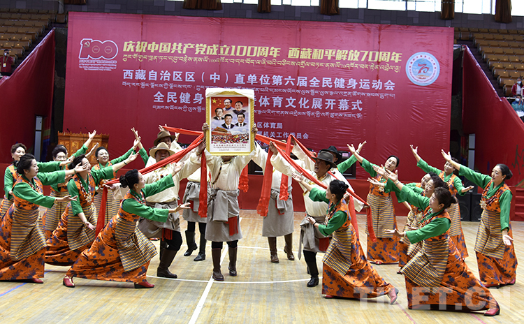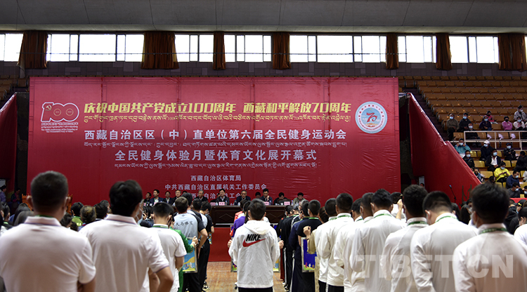 圖為西藏自治區(qū)區(qū)(中)直單位第六屆全民健身運(yùn)動(dòng)會(huì)、全民健身體驗(yàn)月暨體育文化展開幕式現(xiàn)場(chǎng) 攝影:王媛媛