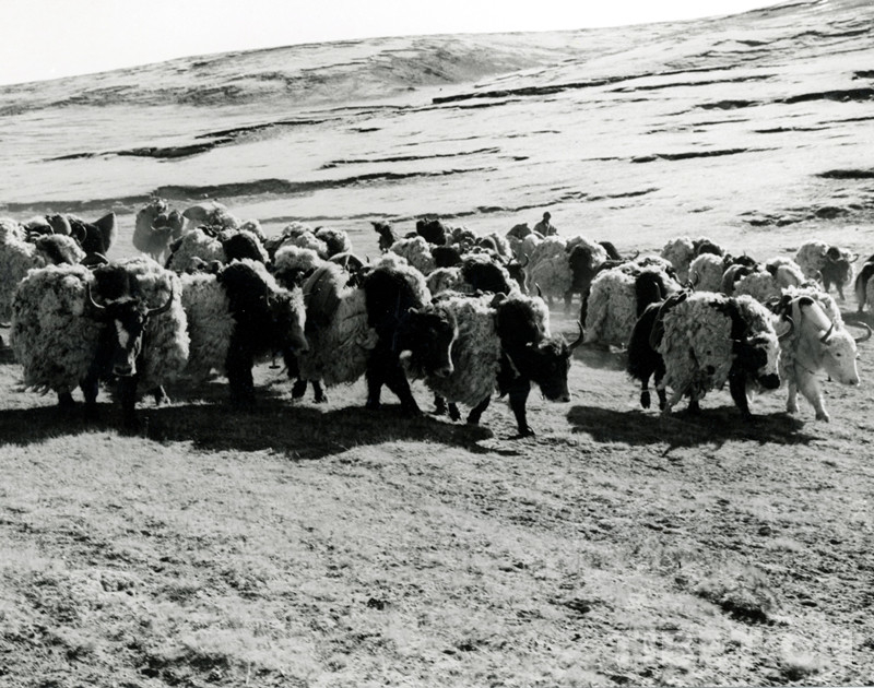這是過去馱運(yùn)所交售羊毛的牦牛隊(duì)(唐召明1987年攝)