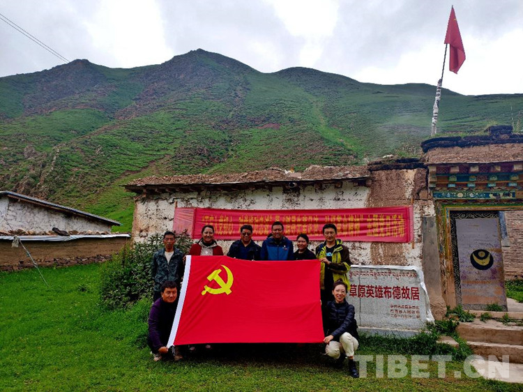 我們?cè)诓嫉鹿示咏邮芰艘惶蒙鷦?dòng)的黨史教育。當(dāng)結(jié)束參觀(guān),走出故居門(mén)時(shí),我們一下子更加領(lǐng)悟到眼前的村莊、山川、河谷為什么如此寧?kù)o、美好而又詳和的真正原因了。在大家提議下,便展開(kāi)黨旗,在“草原英雄布德故居”前合影,這是一次最難忘的黨日活動(dòng)。當(dāng)上車(chē)離開(kāi)時(shí),我們與頓珠扎西同志和其家人依依不舍。英雄布德是我們?nèi)松飞系囊蛔S碑和榜樣,將照耀我們的行程,增強(qiáng)我們的斗志,不忘初心,牢記使命,繼續(xù)前行。(中國(guó)西藏網(wǎng) 文/馮智 本文系中國(guó)藏學(xué)研究中心“那曲市民族交往交流交融史實(shí)調(diào)研組”供稿)