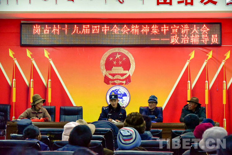 圖為洛桑旦增向轄區(qū)群眾宣講十九屆四中全會精神