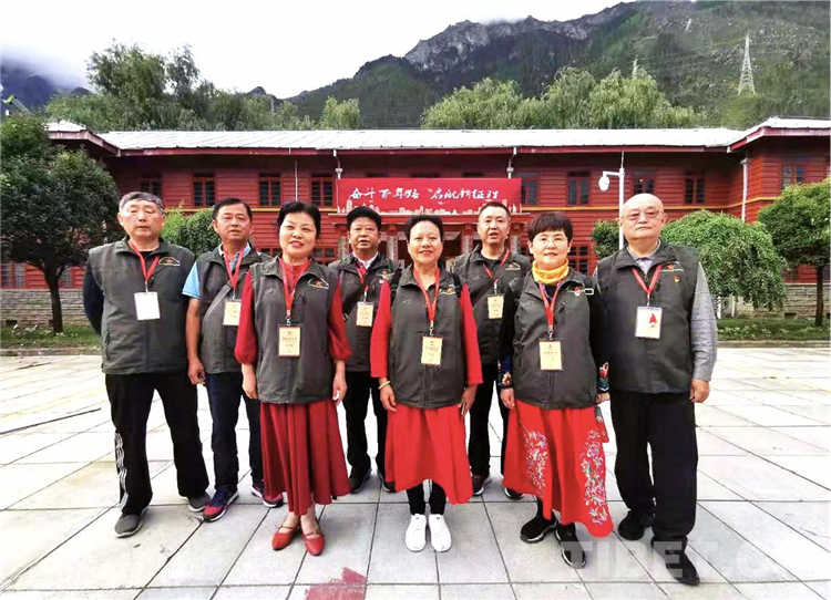 圖為“紅色波密之行”河南團(tuán)部分成員在“紅樓”前合影