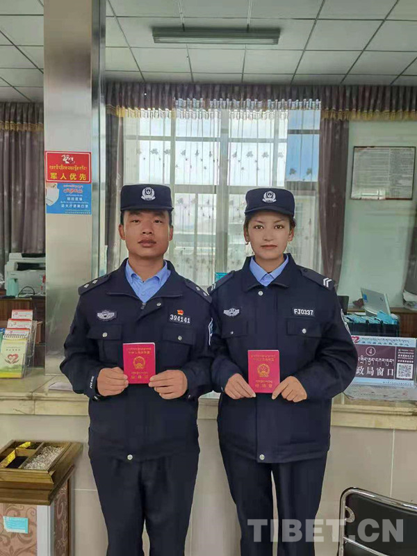 圖為王江鵬和尼瑪普赤領(lǐng)證時(shí)的合影