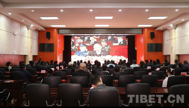 圖為日喀則市各族各界干部群眾集中收看慶祝大會實況 來源:日喀則市廣播電視臺