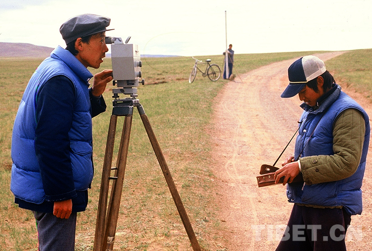 這是陜西省國家土地管理局科研人員利用衛(wèi)星遙感技術(shù)幫助西藏那曲地區(qū)(現(xiàn)那曲市)進(jìn)行土壤普查(唐召明1987年攝)