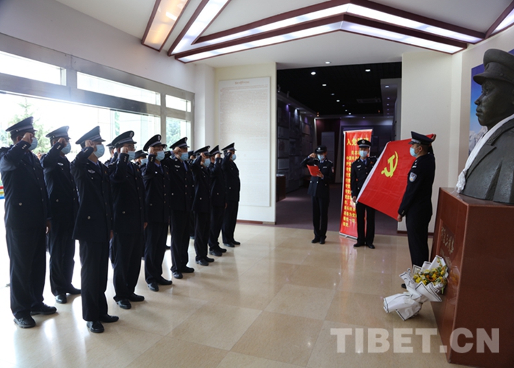 活動期間,西藏出入境邊防檢查總站執(zhí)法調(diào)查支隊各級在駐地同步開展烈士紀(jì)念日活動。機關(guān)黨支部組織民警前往譚冠三紀(jì)念園,在烈士紀(jì)念碑前默哀三分鐘,并為烈士敬獻鮮花,表達對十八軍政委譚冠三同志的深切緬懷與追思。隨后,全體民警在烈士雕像前重溫入黨誓詞,再次向黨、向祖國和人民鄭重承諾時刻做到對黨忠誠、服務(wù)人民、執(zhí)法公正、紀(jì)律嚴明,始終銘記自己肩負的神圣職責(zé)和光榮使命。