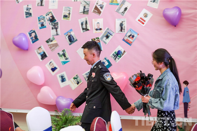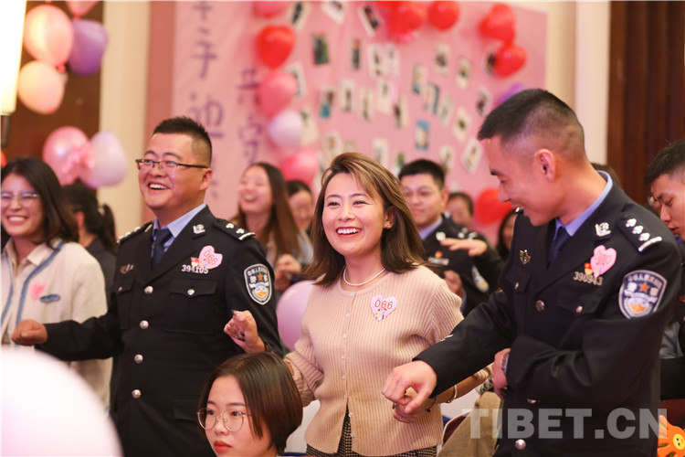 活動(dòng)過程中,總站形象宣傳片《我是誰》,向女嘉賓們展現(xiàn)了西藏移民管理警察的職業(yè)特點(diǎn),使女嘉賓對民警工作職責(zé)產(chǎn)生了初步的認(rèn)識(shí)。在主持人的引導(dǎo)下,精彩的才藝展示和豐富的游戲環(huán)節(jié)很快將現(xiàn)場氣氛推向一個(gè)接一個(gè)的高潮?;?dòng)游戲“牽手牽愛”“心有靈犀”“守護(hù)愛情”“唯愛接力”通過聆聽詩句抓緊手指、借助比劃你問我答,相互協(xié)助完成任務(wù)等方式增進(jìn)了男女嘉賓之間的了解和默契,促進(jìn)了相互之間更好交流。男女嘉賓才藝表演和日喀則邊境管理支隊(duì)1753樂隊(duì)送上的精彩曲目,令活動(dòng)現(xiàn)場青春洋溢。最終,18對男女嘉賓互生情愫,牽手成功,36對交換聯(lián)系方式,開啟更加深入的幸福交流。