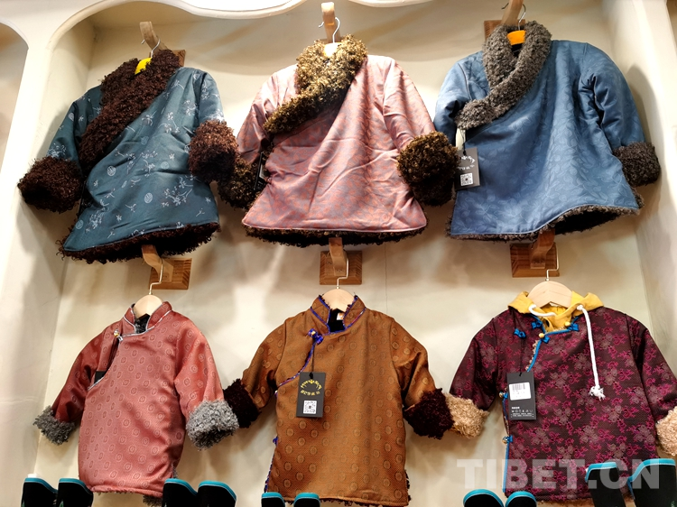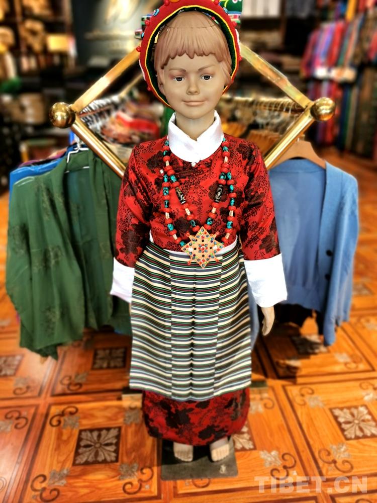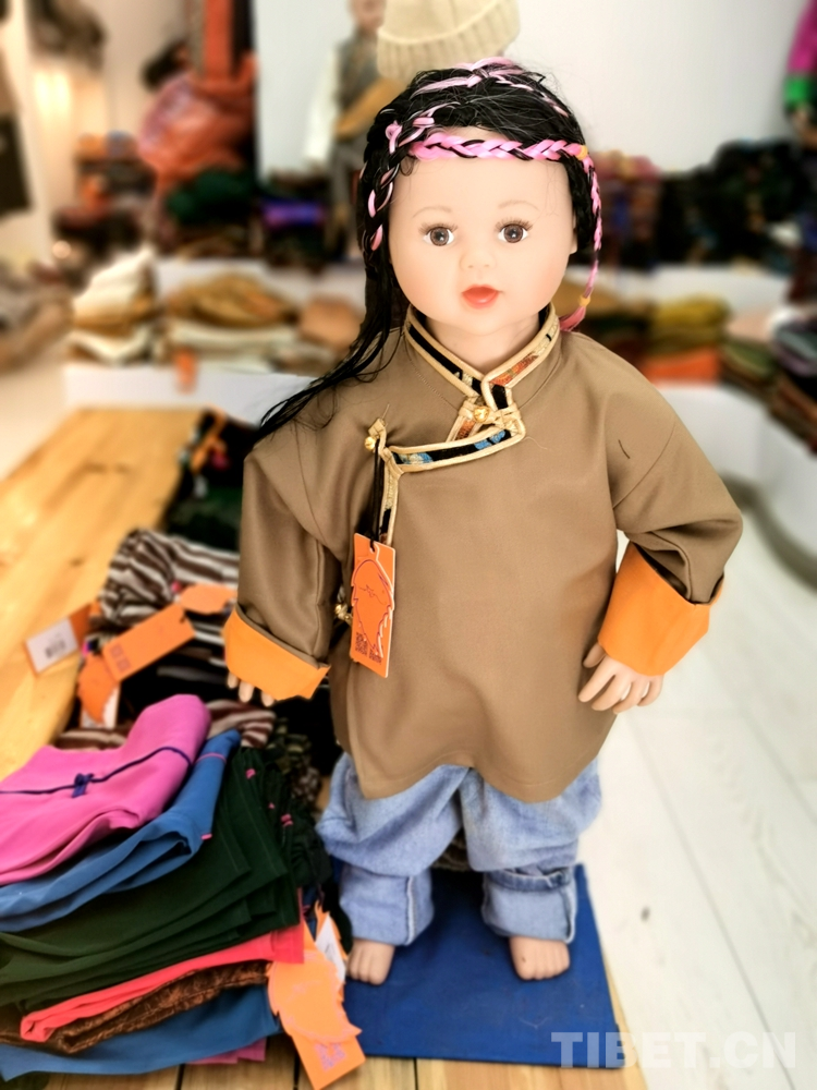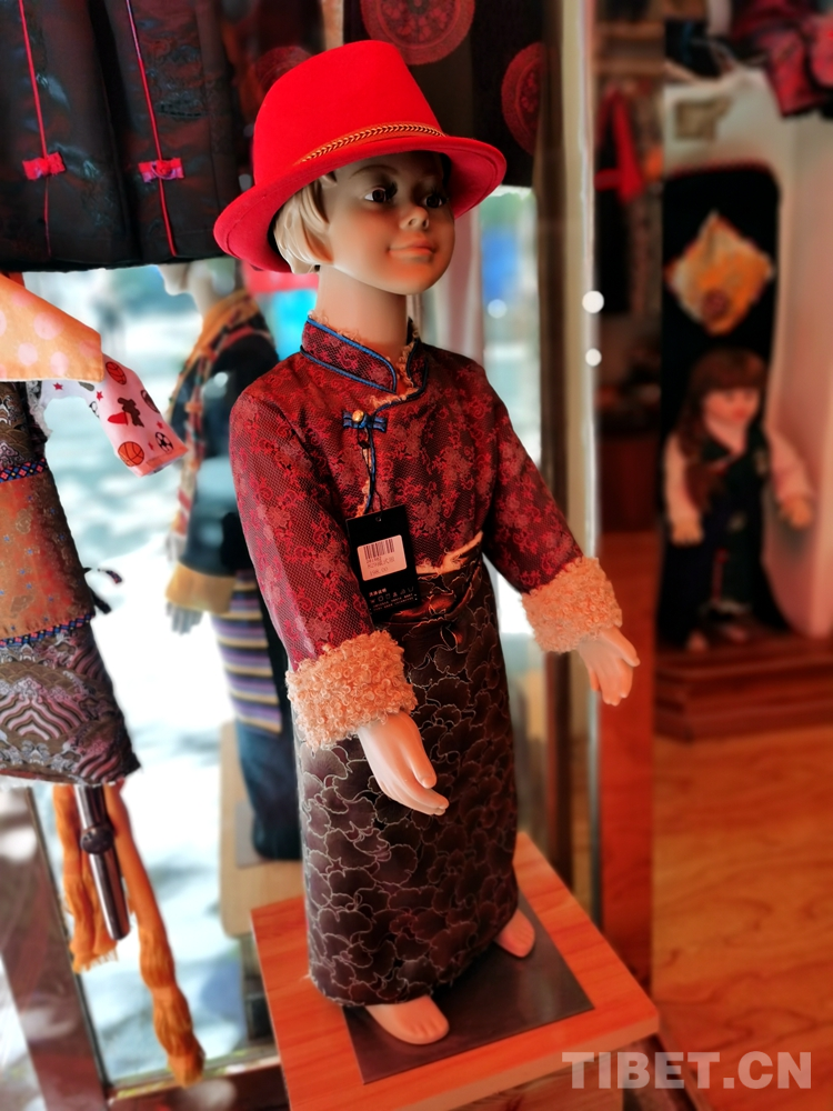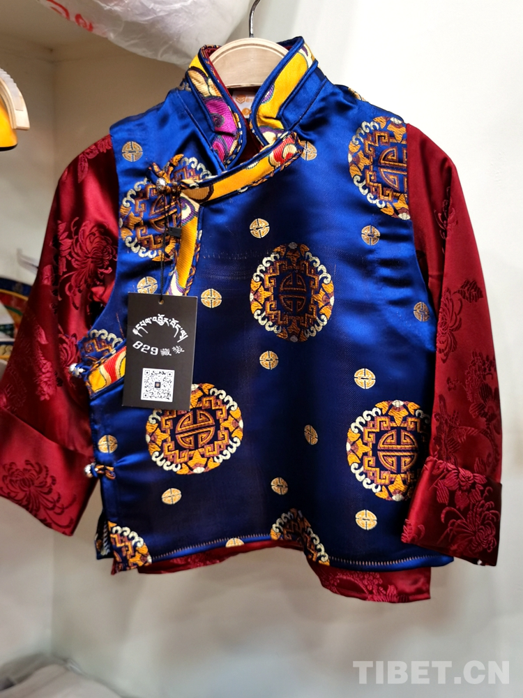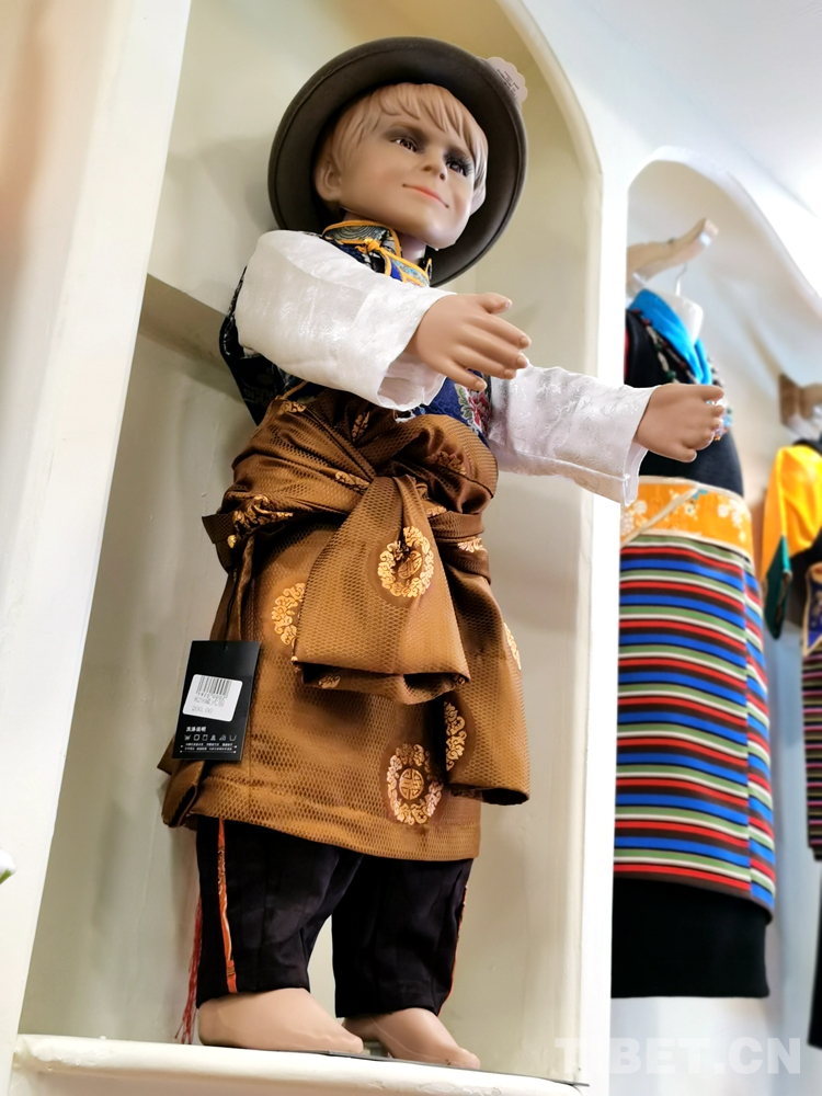 變化在時光中悄然發(fā)生。829藏裝店店員次旺扎西興奮地介紹說,近年來藏裝在質(zhì)和量上都發(fā)生了巨變,藏裝市場也在規(guī)范、體量、創(chuàng)新等方面進(jìn)一步發(fā)展,外來游客也特別喜愛,并常常有定制需求。富有民族特色的藏式童裝成了時尚圈追捧的一種特色民族元素。