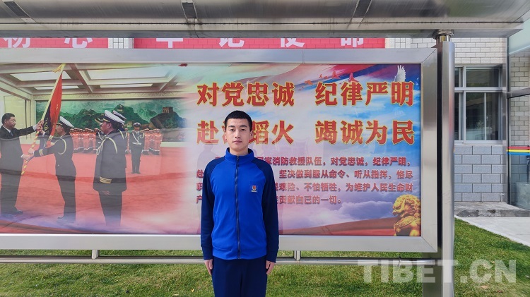 圖為實(shí)習(xí)消防員劉星文