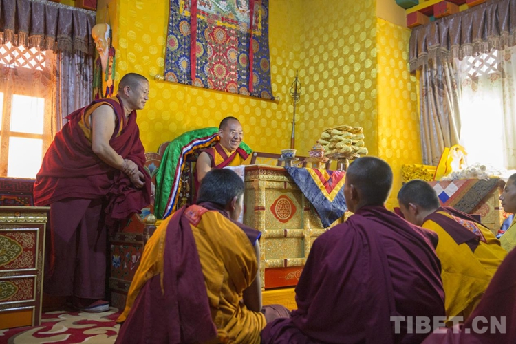 “殊勝時(shí)代,我們作為釋迦弟子都具有繼承和發(fā)揚(yáng)佛法的神圣使命。佛教進(jìn)入再弘期,不能像等新年那樣一直等著,而是要愛護(hù)佛法,為自己的寺廟擔(dān)責(zé)?!痹诩{塘寺講經(jīng)后,班禪勉勵(lì)僧眾,“現(xiàn)已進(jìn)入佛法再弘期。作為農(nóng)民他們有自己的農(nóng)活要干,作為商人他們有自己的商業(yè)活動(dòng)要忙,而我們作為佛弟子,要做好弘揚(yáng)佛法、利樂(lè)眾生,做符合新時(shí)代要求的講經(jīng)闡釋等工作。要做一名名副其實(shí)的合格僧人,嚴(yán)守戒律,精進(jìn)研修,從自身獨(dú)特角度,輔助支持黨和政府做好為人民服務(wù)的工作,在推動(dòng)社會(huì)發(fā)展進(jìn)步中發(fā)揮積極作用?!?/p>