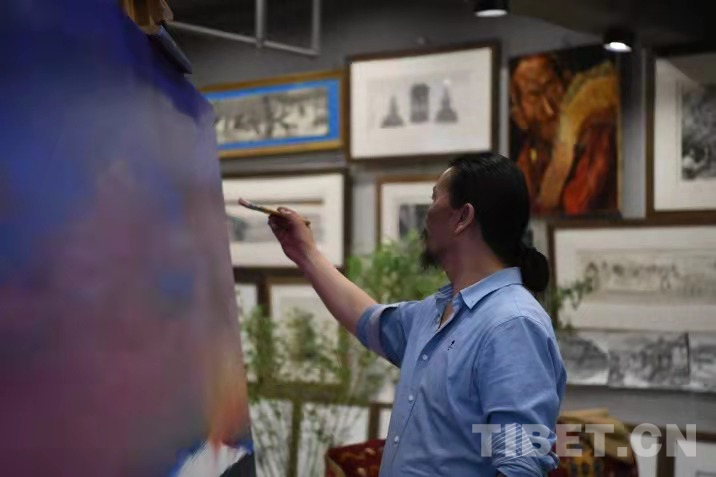 黃家林,1966年生于西藏林芝,80年代初師從當(dāng)代藝術(shù)家裴莊欣學(xué)習(xí)繪畫(huà),自此開(kāi)始藝術(shù)歷程。他創(chuàng)作的27.42米鋼筆畫(huà)長(zhǎng)卷《卓瓦桑姆》,被世界紀(jì)錄(WRCA)認(rèn)證為“世界上最長(zhǎng)的藏戲主題鋼筆畫(huà)”,該作品在“一帶一路中華文化走出去全球藝術(shù)巡展第九站暨中馬兩國(guó)藝術(shù)大展”亮相;曾舉辦過(guò)“神宮·神?!秉S家林油畫(huà)作品展、“青山綠水——大美西藏油畫(huà)風(fēng)景展”、民族文化宮黃家林油畫(huà)作品捐贈(zèng)展、“盛世華章 西藏印象”北京聯(lián)展等。
