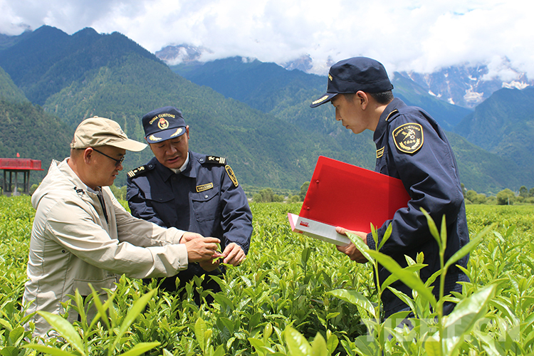 圖為海關(guān)關(guān)員在西藏自治區(qū)林芝市易貢茶場實(shí)地指導(dǎo)工作 圖片由拉薩海關(guān)提供