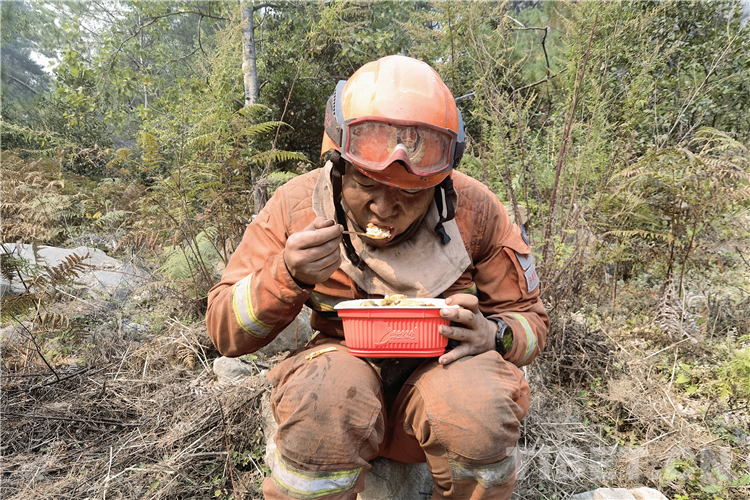 昌都市森林消防支隊(duì)卡若區(qū)中隊(duì)負(fù)責(zé)清理火場南側(cè)面積最廣的區(qū)域,由于情況緊急,火場坡度接近80°,加上每名消防員負(fù)重20公斤以上,指戰(zhàn)員們出發(fā)時只帶了滅火裝備和少量的飲用水,忍饑挨餓,每日連續(xù)奮戰(zhàn)將近10小時以上。期間,他們婉拒了好幾撥主動來送水、送干糧的群眾。