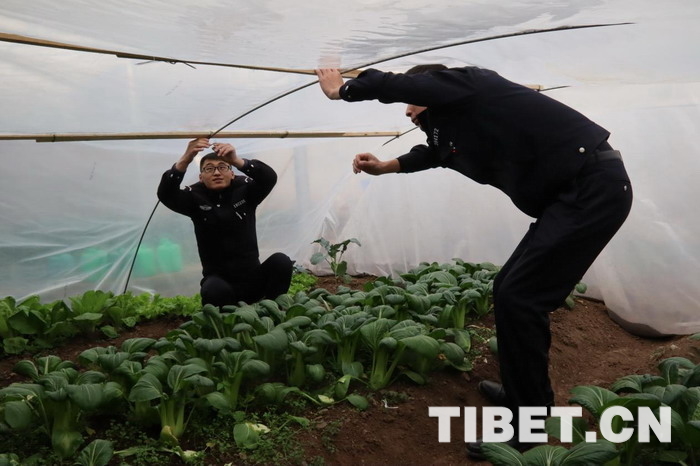 “每到冬天,單位溫室保溫效果就會(huì)降低,嚴(yán)重影響了蔬菜種植工作的順利開展,有時(shí)候都吃不到新鮮的蔬菜。一次偶然機(jī)會(huì),我了解到這種‘棚中棚’種植技術(shù),保溫效果很好,蔬菜長勢(shì)也很好,準(zhǔn)備明年在各基層單位進(jìn)行推廣?!痹摯箨?duì)大隊(duì)長尼瑪說。