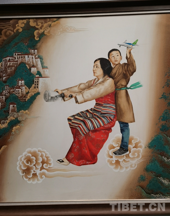 此次展覽共有39位藝術(shù)家的70多幅作品展。藝術(shù)家們?cè)诶^承西藏傳統(tǒng)的藝術(shù)形式上,利用西藏特殊元素引入各種畫種之中,并引入新的題材,讓其變得十分廣泛,同時(shí)也融合了油畫、水墨畫、水彩、雕塑等。