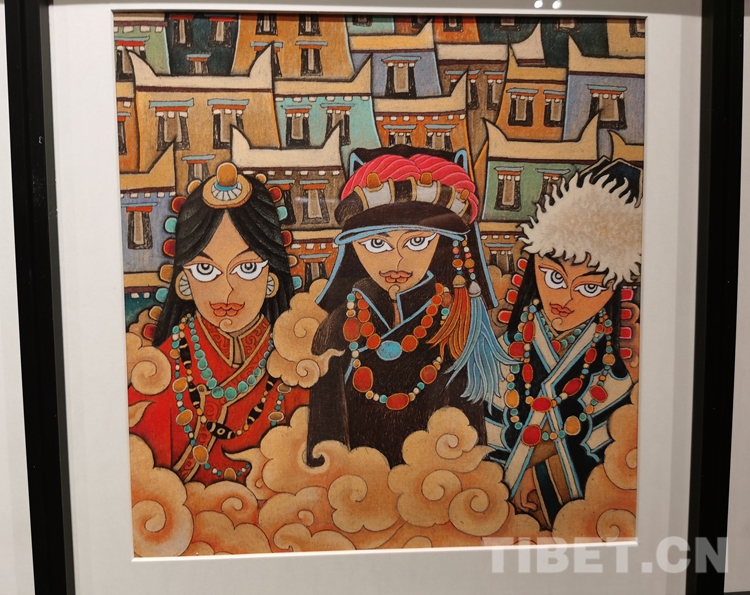 圖為西藏當(dāng)代美術(shù)作品精品展現(xiàn)場(chǎng)展品 攝影;王淑