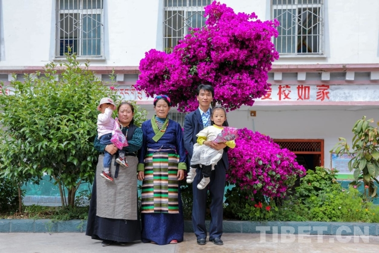 圖為云南小伙雷云春與藏族妻子四朗旺姆一家合影 攝影:周婷婷 蔡生萬(wàn)
