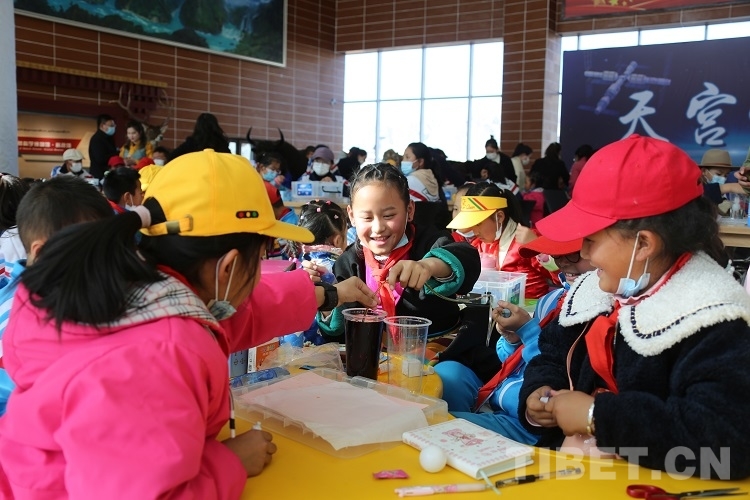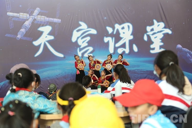 西藏自治區(qū)拉薩市西藏自然科學博物館內(nèi),在熱巴舞的歡聲律動和“液氮火箭”科普實驗的“飛天掠影”中,來自拉薩市第一小學和拉薩江蘇實驗中學的80名學生共同觀看了“天宮課堂”連線直播,聆聽來自空間站的親切聲音,與中國空間站內(nèi)的航天員“零距離”同步“天宮課堂”科學實驗操作。