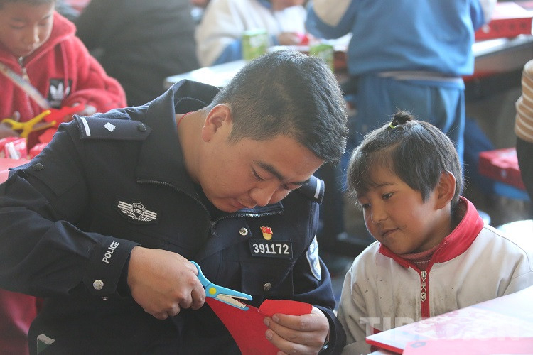 隨后,民警們?yōu)橥瑢W(xué)們發(fā)放了拉薩邊檢站和東莞邊檢站共同準(zhǔn)備的兒童手工DIY禮盒,并和同學(xué)們一起完成剪紙手工制作,共同感受著中華傳統(tǒng)文化美學(xué),體驗(yàn)手工制作的樂趣?,F(xiàn)場歡聲笑語,其樂融融。