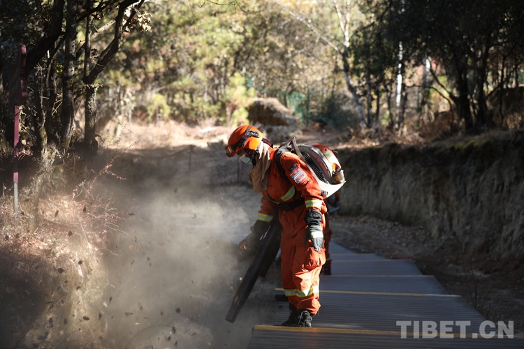 圖為巴宜區(qū)中隊(duì)指戰(zhàn)員對(duì)比日山棧道兩側(cè)腐殖層進(jìn)行清理,有效防止林區(qū)內(nèi)高木、灌木、蒿草等地表植物長(zhǎng)勢(shì)茂盛,可燃物大量聚集