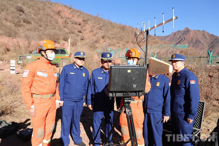 圖為貢覺縣駐防分隊救援人員攜裝匍匐前進