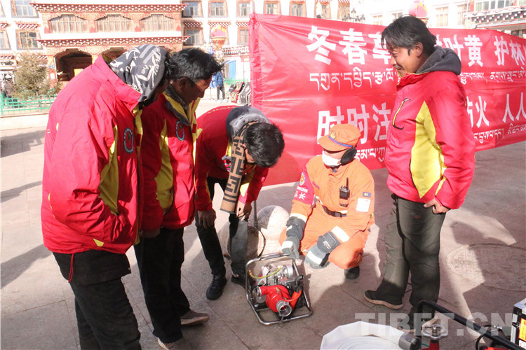 圖為昌都市貢覺(jué)縣,消防隊(duì)員向群眾宣傳消防知識(shí)