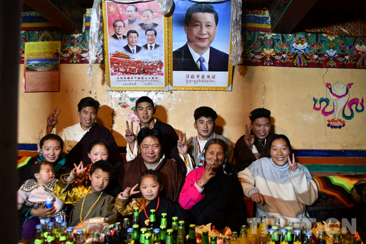“尼瑪,拉姆,快過來獻(xiàn)哈達(dá)了!”索朗仁青一邊招呼著自己的孫子、孫女,一邊整理著手中的哈達(dá)?!跋蝾I(lǐng)袖獻(xiàn)哈達(dá)是我們家每年不變的傳統(tǒng),我們永遠(yuǎn)感謝偉大領(lǐng)袖,感謝共產(chǎn)黨。”索朗仁青一家莊嚴(yán)面向墻上懸掛的領(lǐng)袖像,高舉哈達(dá),齊聲祝福:“扎西德勒!”