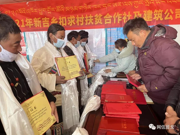 圖為西藏自治區(qū)那曲市班戈縣新吉鄉(xiāng)扣求村扶貧合作社及建筑公司2021年度分紅大會(huì)