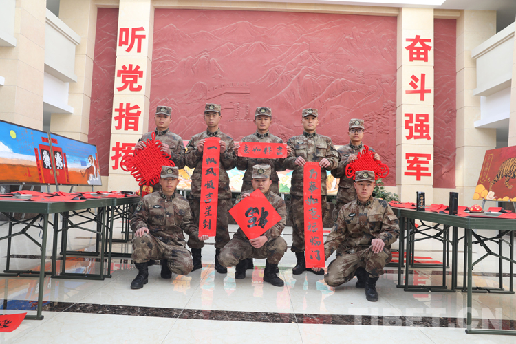 過年貼春聯(lián),是中華民族的傳統(tǒng)習(xí)俗之一,增加過年氛圍的同時(shí),也表達(dá)了官兵對(duì)新年美好的祝福。春聯(lián),又稱“春貼”“門對(duì)”“對(duì)聯(lián)”,是過年時(shí)所貼的紅色喜慶元素,它以對(duì)仗工整、簡潔精巧的文字描繪美好形象,抒發(fā)美好愿望,是中國特有的文學(xué)形式,是中華民族過年的重要習(xí)俗。