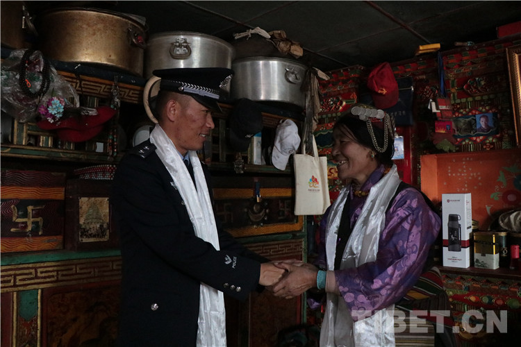 每年除夕開(kāi)展走訪慰問(wèn)是派出所必不可缺的工作,民警們大包小包提著油、米、糌粑等日常生活用品,走在他們?cè)偈煜げ贿^(guò)的蜿蜒小道上,去邀請(qǐng)村里的孤寡老人和獨(dú)自留守在家中的夏爾巴群眾到派出所里共度除夕。