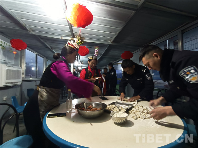 圖為夏爾巴群眾和民警一起包餃子