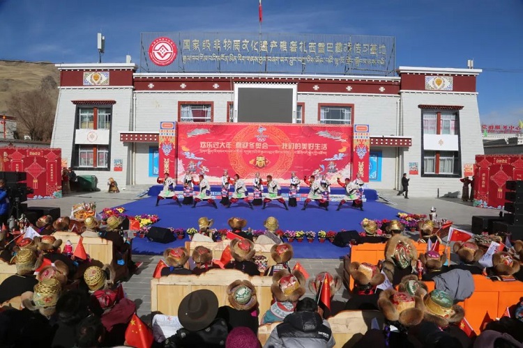 冷冽的寒風并沒有阻擋群眾對“村晚”的熱情?;顒赢斕煲淮笤?,滿懷喜悅與熱情的群眾身著節(jié)日盛裝,齊聚在扎西曲登社區(qū)非遺活動基地,期盼著表演開始。后臺,演員們正在做著最后的準備,每個人的臉上都洋溢著喜悅之情。