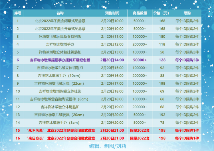 記者整理出了2月20日開放預(yù)售的所有特許商品的有關(guān)情況,此前遺憾沒能擁有冰墩墩的網(wǎng)友們,這次應(yīng)該有望實現(xiàn)“一戶一墩”。