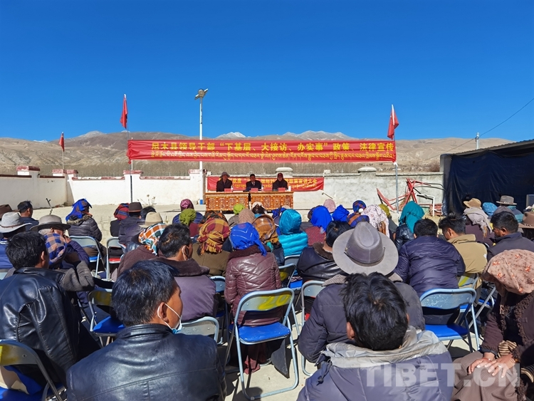 圖為共青團(tuán)拉薩市委員會(huì)聯(lián)合尼木縣委組織部開展相關(guān)法律宣傳工作