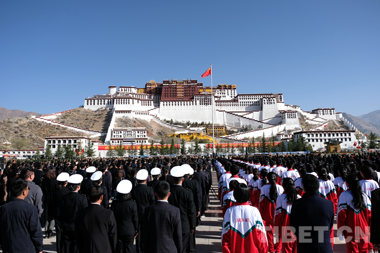 中國西藏網(wǎng)訊 3月28日上午,西藏自治區(qū)首府拉薩市風(fēng)和日麗,1000余名各族各界群眾聚集在布達(dá)拉宮廣場(chǎng),隆重舉行“升國旗、唱國歌”儀式,慶祝西藏百萬農(nóng)奴解放63周年。