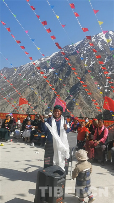 一大早,村民們匯聚在村委會(huì),將一面鮮艷的五星紅旗冉冉升起,國歌在山谷中回蕩。村委會(huì)第一書記次仁扎西召集大家進(jìn)行了新舊對(duì)比,憶苦思甜,感恩黨的關(guān)懷、感恩國家支持。宣講員白瑪卓嘎主講團(tuán)結(jié)的益處,引導(dǎo)鄰里鄉(xiāng)親團(tuán)結(jié)和睦,自覺守護(hù)中華民族大團(tuán)結(jié)。在陣陣歡呼與掌聲中,汝村文藝演出隊(duì)跳起具有本村特色的鍋莊舞,84歲的曲珍老阿媽唱響《北京的金山上》。有著26年黨齡的老黨員德吉大姐用一曲《再唱山歌給黨聽》表達(dá)不忘黨恩,永遠(yuǎn)跟黨走的決心。
