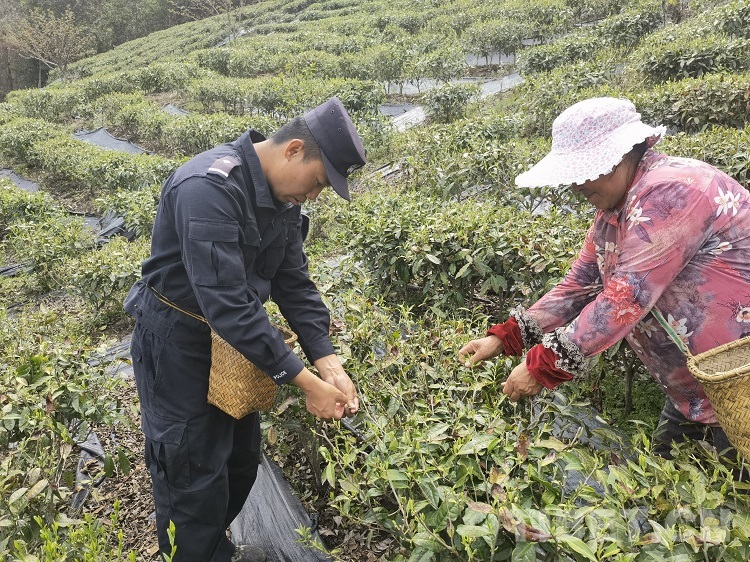 “純手工采茶采摘芽葉比較均勻,茶葉的品質(zhì)也比較好,這也導致需要大量人力手工采摘,每年我們派出所都會通過開展‘助農(nóng)春耕’活動,幫助轄區(qū)人手不足的農(nóng)戶采摘茶葉?!北潮肋吘撑沙鏊窬钪艺f。