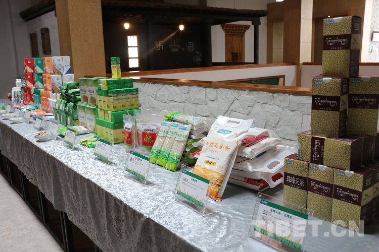 圖為國家糧食產(chǎn)業(yè)(青稞深加工)技術(shù)創(chuàng)新中心掛牌儀式現(xiàn)場(chǎng)展出的部分西藏青稞產(chǎn)品 攝影:王佳豪