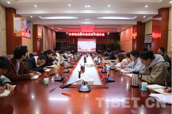 中國西藏網(wǎng)訊 近日,西藏自治區(qū)昌都市委統(tǒng)戰(zhàn)部舉辦“鑄牢中華民族共同體意識”專題講座。市民委黨組成員、一級調(diào)研員巴桑旺堆為干部職工講授民族團結(jié)進步模范區(qū)創(chuàng)建工作知識。
