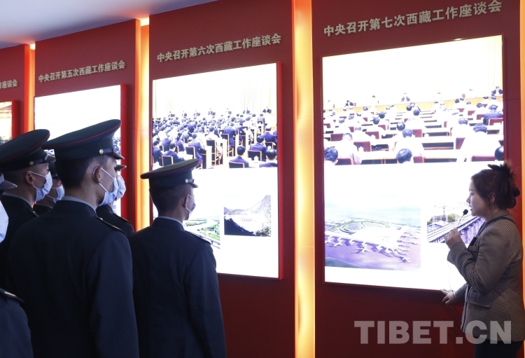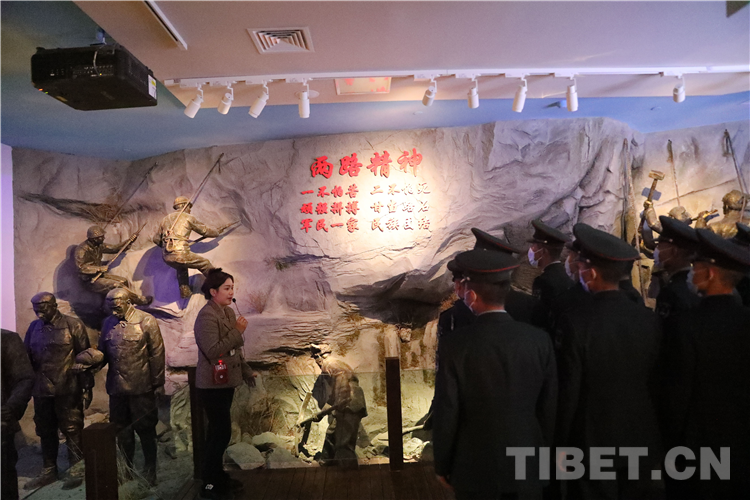 “1959年3月28日,中央政府宣布解散西藏地方政府,徹底砸碎了桎梏西藏上千年的封建農(nóng)奴制,西藏翻開了新的歷史篇章?!痹谥v解員的引導(dǎo)下,該團(tuán)80名青年官兵走進(jìn)西藏百萬農(nóng)奴解放紀(jì)念館,沿著革命先輩的足跡,聆聽著崢嶸歲月里一段段感人至深的紅色故事,2700平方米的展廳中陳列了800多件歷史文獻(xiàn)檔案資糧、文物實物、圖片和展陳藝術(shù)作品,詳細(xì)介紹了中國共產(chǎn)黨帶領(lǐng)西藏各族人民進(jìn)行偉大的民主改革,使百萬農(nóng)奴翻身得解放的廢奴歷史。