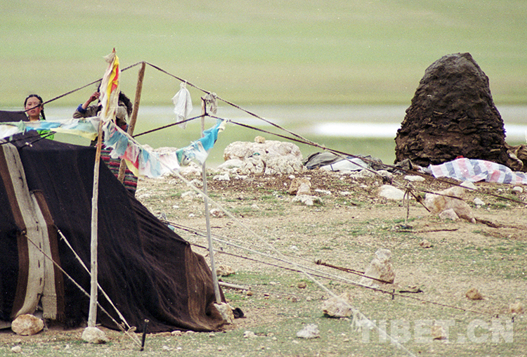 這是幾位在班戈縣納木錯湖邊煮茶、抓糌粑吃午餐的藏北牧人(唐召明1991年攝)