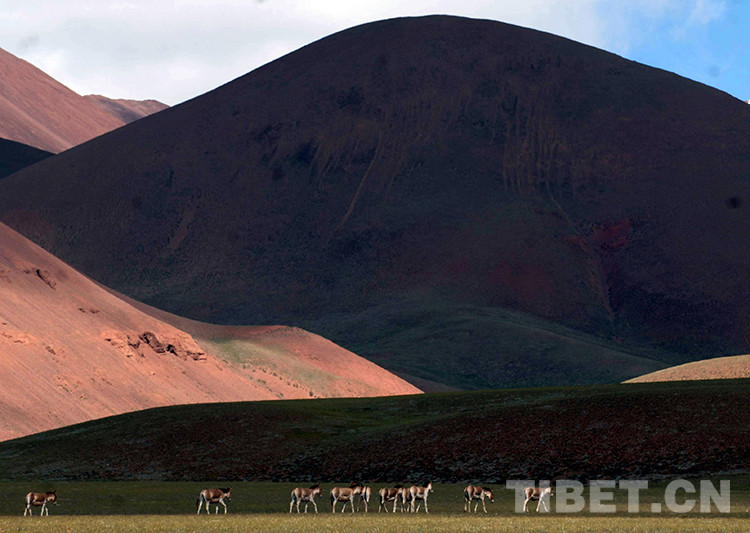 這是羌塘國家級自然保護區(qū)多彩的山脈與藏野驢(唐召明2009年8月5日攝)