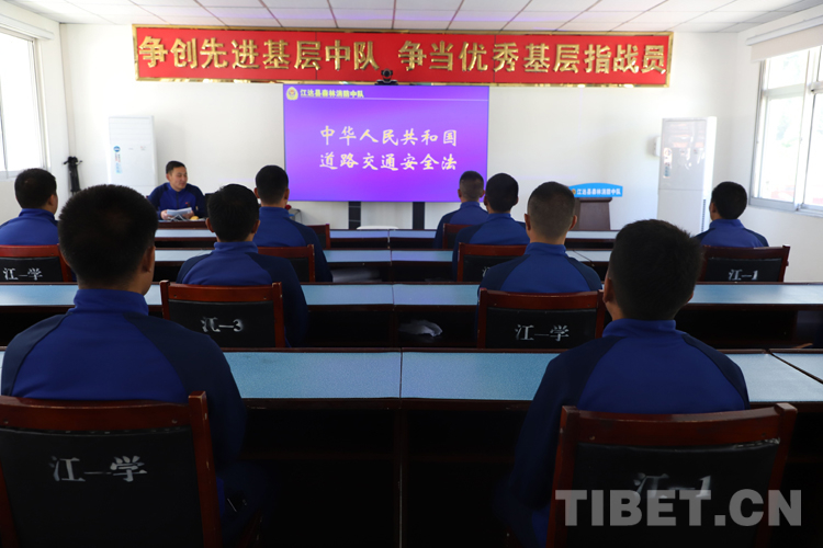 圖為昌都市森林消防支隊(duì)江達(dá)縣中隊(duì)指戰(zhàn)員學(xué)習(xí)《中華人民共和國(guó)道路交通安全法》