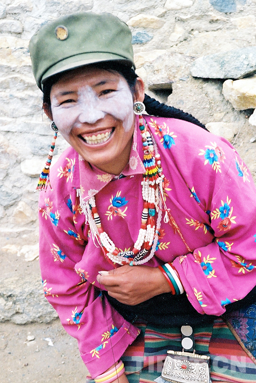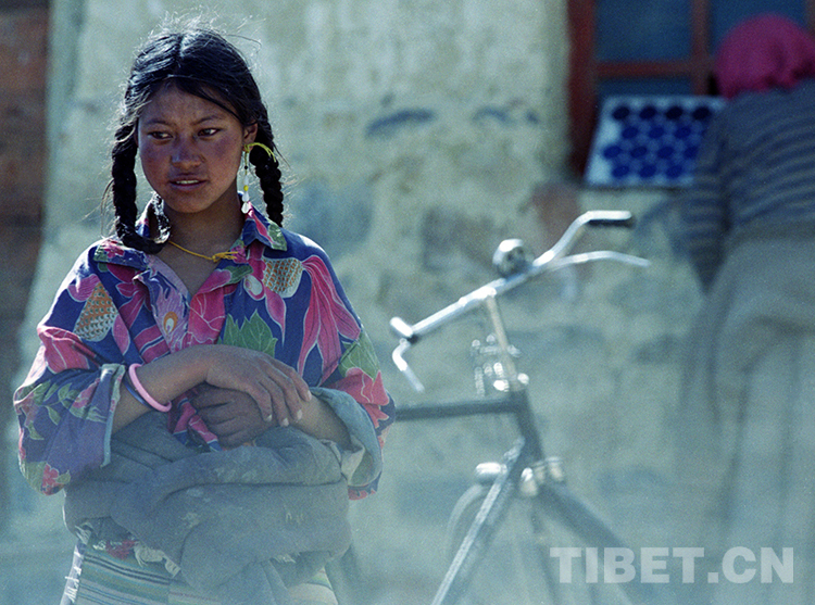 這是藏北尼瑪縣文部鄉(xiāng)過去使用牦牛奶來保護皮膚的藏族婦女(唐召明2001年攝)