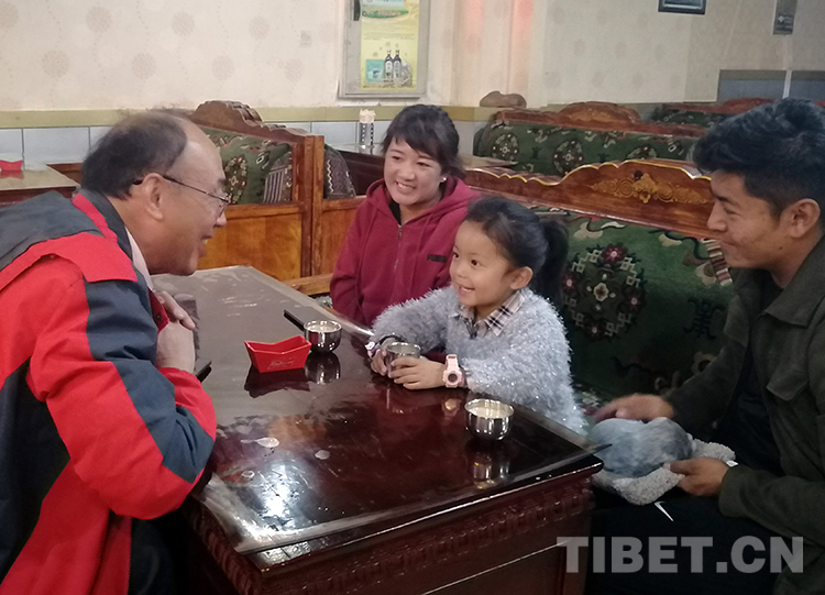 這是唐召明在拉薩采訪為女兒治病的白瑪拉姆一家。白瑪拉姆是唐召明30年前所拍攝“高原紅”草原小姐妹照片中的妹妹(唐召明提供,2019年9月22日攝)