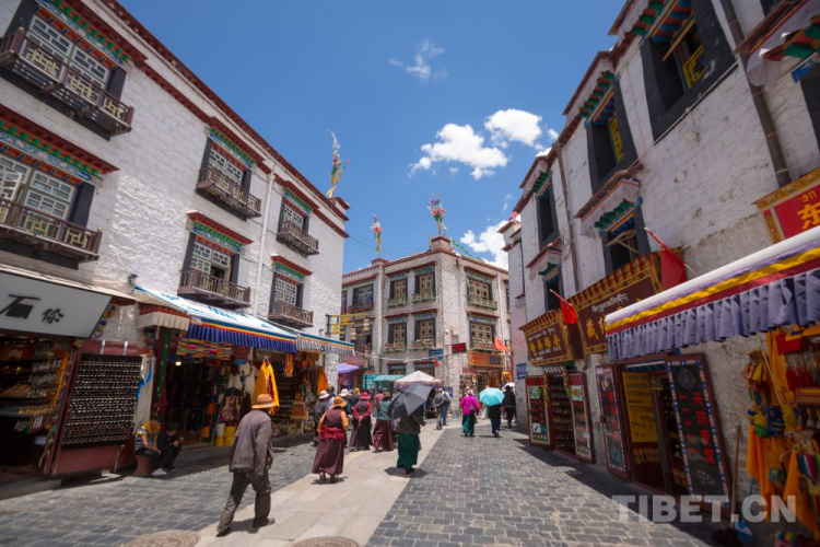 這里是拉薩古城中心,是拉薩經(jīng)濟(jì)、文化、民族手工藝和風(fēng)土人情的集合地,自古便吸引了大量外地商人來(lái)此謀生。千百年間借助繁忙的商貿(mào)往來(lái),各民族之間實(shí)現(xiàn)深入交往、交流、交融。如今,“老字號(hào)”藏裝店、藏餐館、茶館,與特色文創(chuàng)商店、具有西藏特色的新式茶飲連接起八廓街的傳統(tǒng)與現(xiàn)代,延續(xù)千年八廓街的繁榮。