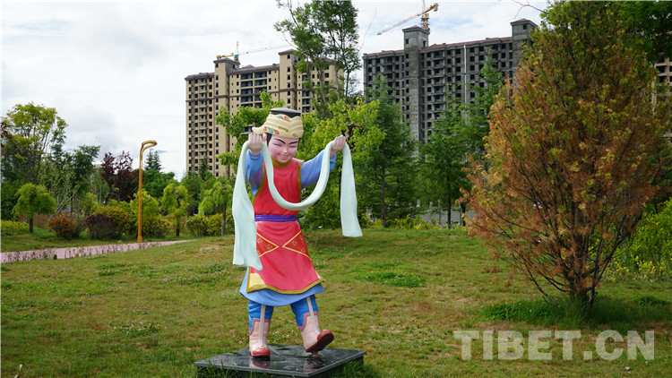 圖為林芝市工布公園里穿著工布藏裝的雕像,面帶微笑、手捧哈達(dá)、面向公園之外歡迎國(guó)內(nèi)外朋友的到來(lái) 攝影:旦曲