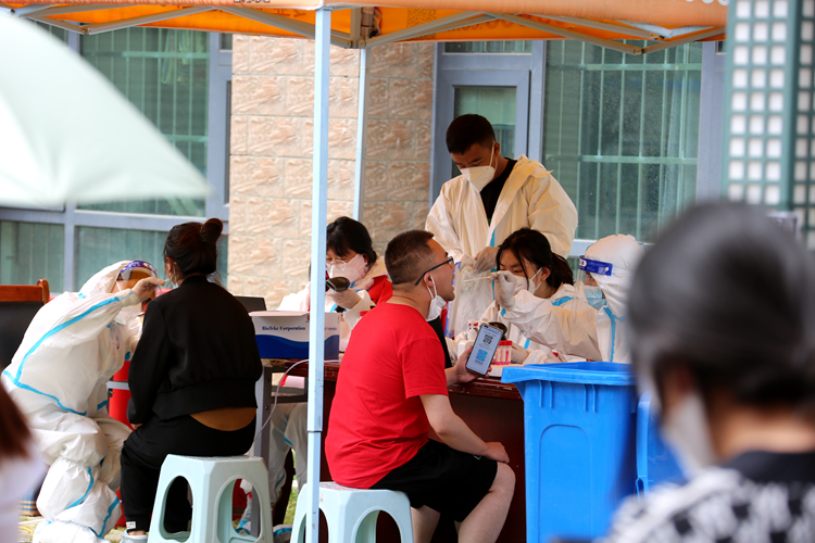 圖為位于拉薩市柳梧新區(qū)南苑小區(qū)的核酸檢測(cè)點(diǎn) 攝影:王佳豪