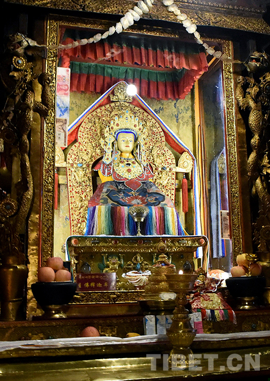 這是藏北首府那曲鎮(zhèn)孝登寺所供奉、當年文成公主攜帶進藏的其中一尊釋迦牟尼佛古銅像(唐召明2017年7月19日攝)