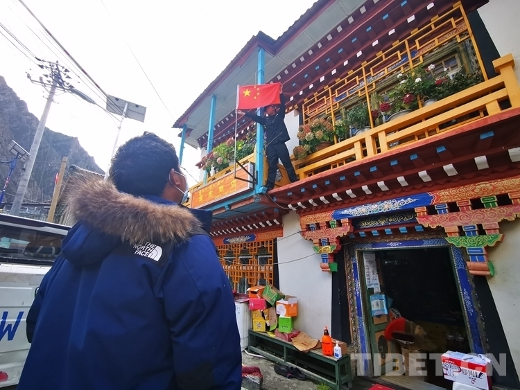 “老奶奶,我?guī)驮蹅兗野褔鞉斓介T口最醒目的地方……”說著,林芝邊境管理支隊金東邊境派出所民警楊子拿著紅旗走向了卓瑪拉姆老人家門口,在老人家門口插上了耀眼的五星紅旗。