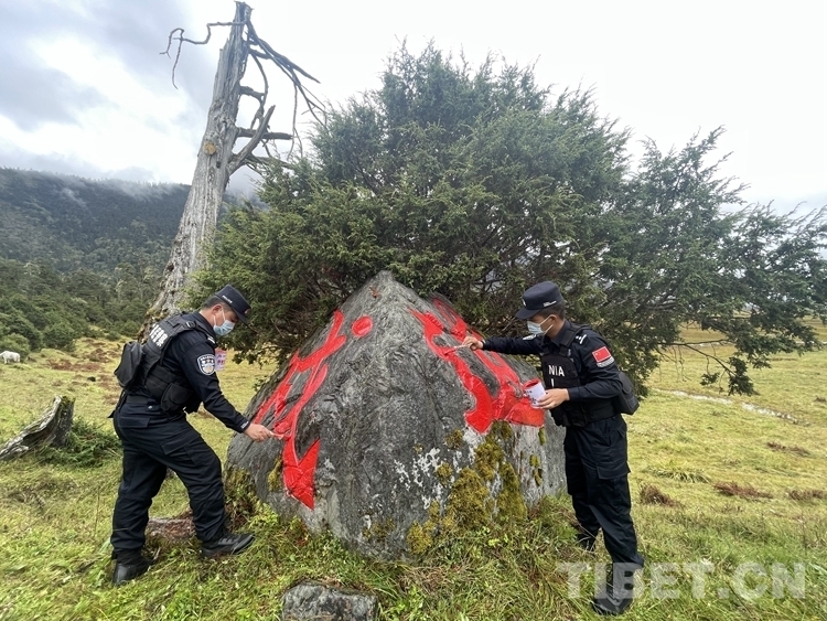 9月30日,林芝邊境管理支隊南伊邊境派出所組織為東拉山口戍邊石開展了“換新衣”活動。